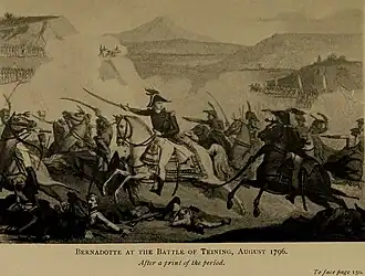The Battle of Theiningen was a meeting engagement that took place in Germany on 22–23 August 1796 during the War of the First Coalition. A French division, led by Jean-Baptiste Bernadotte, repulsed an attempted encirclement, and fought a successful rearguard action, despite being outnumbered three-to-one, against an Austrian army led by Archduke Charles of Austria, allowing the French Army of Sambre and Meuse to retreat toward the Rhine.[5]