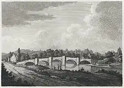Pwll Melyn . . . is the pond lying north-east of Usk Castle. . . numerous skeletons were found in this pond when it was cleaned out. The pond is so called because the water is always slimy and of a dirty colour. . . The 'pwll' itself is reduced in size, the marshy land drained, and the 'pwll' is now enclosed by an iron railing and supplies water to the railway. From the 'pwll' the ground rises westward and here Owen's army attacked the castle on the north. It is a well-known spot and the name has never been lost.