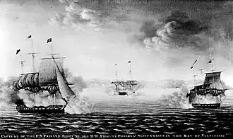 The Battle of Valparaíso, also called the Capture of USS Essex, was a naval action fought during the War of 1812. It took place off Valparaíso, Chile on March 28, 1814, between the frigate USS Essex and the sloop USS Essex Junior of the United States Navy and the frigate HMS Phoebe and sloop HMS Cherub of the Royal Navy. The British ships won the battle, and the American vessels were captured.