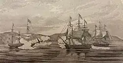 By 20 June, Dixon received news of Hillyar's victory which passed over the Andes. Dixon confirmed the Treaty of Lircay. Briton, Tagus, and Cherub were ordered to remain in the South Pacific to watch the whaling fleet. News of the success reached London in August.[35]