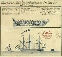 In order to compensate for the Swedish navy's diminished resources, letters of marque were issued, which authorized crews of armed, privately owned Swedish vessels to seize vessels belonging to nations that Sweden were at war with, and to an extent, sell their cargo. The crown received a 10 percent cut on these sales.[5] Starting in 1710, privateering companies were being set up as a result. In 1711, the Crown allowed loyal privateers to borrow weapons and munitions from the government's Gothenburg storages. Admirals complained that privateers were using conscripted sailors during their operations that were supposed to be serving in the Navy.[6]