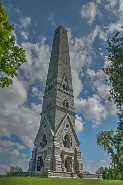 The battlefield and the site of Burgoyne's surrender have been preserved, and are now administered by the National Park Service as the Saratoga National Historical Park, which was listed on the National Register of Historic Places in 1966. The park preserves a number of the buildings in the area and contains a variety of monuments.[106] The Saratoga Monument obelisk has four niches, three of which hold statues of American commanders: Gates and Schuyler and of Colonel Daniel Morgan. The fourth niche, where Arnold's statue would go, is empty.[107] A more dramatic memorial to Arnold's heroism, that does not name him, is the Boot Monument. Donated by Civil War General John Watts de Peyster, it shows a boot with spurs and the stars of a major general. It stands at the spot where Arnold was shot on October 7 charging Breymann's redoubt and is dedicated to "the most brilliant soldier of the Continental Army".[108]