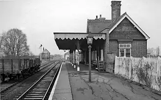 The line and station were opened on 1 June 1889 for goods and on 1 October 1889 for passenger services by the Great Eastern Railway.[1] The station had a single platform with a station building, a goods shed, a goods yard including cattle pens and a 34-lever signal box.