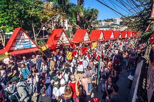 Bauernfest (also called the Festival of the German Settlers) is a festival of Germanic traditions that takes place in the city of Petrópolis, in highlands region of the state of Rio de Janeiro. The festivities occurs since the period of the Germanic colonization, but only gaining form in the 20th century. It occurs annually during the month of July.[1]