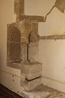 The Church of England parish church of Saint Nicholas was built at the beginning of the 13th century[3] as a dependent chapel of Uffington.[2] The chancel has an Early English Gothic corner piscina[3] and lancet windows.[4] In the 14th century diagonal buttresses were added to the church[2] and two Decorated Gothic windows were added in the south wall of the nave. The Perpendicular Gothic window in the north wall of the nave was added late in the 15th century. The oak pulpit is Jacobean[2] and came from Grittleton in Wiltshire. The nave roof is also Jacobean. St. Nicholas' Communion plate includes a chalice made in 1583.[5][2] The church is a grade I listed building.[4] Baulking was made an ecclesiastical parish separate from Uffington in 1846.[2] St Nicholas' is now once again part of the Uffington Benefice, along with the parishes of Shellingford and Woolstone.[6]