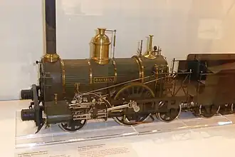 Der Münchner (a Münchner is a man from Munich) was a Bavarian Class A I engine with the number 25. It was originally built for the Munich–Augsburg Railway Company, a private railway company which ran the route between Munich and Augsburg. In 1844 the line was taken over by the state railway and the engine was transferred into state ownership. A large part of the locomotive came from England, which can be seen from the typically English 'pear' shape of the outer firebox.