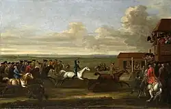 Bay Wanton, on Newmarket Heath with jockey up, 1725, by John Wootton, possibly a son of Bay Bolton and inscribed (but possibly not) 'The property of Charles Paulett, 3rd Duke of Bolton'. -