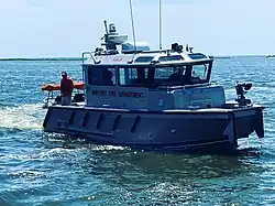 Formed in 1991 by members of the department and companies, was created as the BFD Dive or SCUBA team specializing in mostly subsurface rescues and based on recreation diving adapted to rescues. Early on, the team was one of the largest in Suffolk County based on certified divers. In 2000, the fire district purchased a 19' zodiac hurricane 580 rescue boat. This was to be used in conjunction with the smaller 10' avon rescue boat which was not sufficient for offshore rescues in the Great South Bay. Soon the department found their water rescue alarms went from about 1 or 2 per year to between 30 and 40. Quickly the squad reorganized itself and started advanced training in Public Safety Diving, Surface Rescues and Ice Rescues with nationally recognized certifications. In 2005 two major steps were taken with the squad: first, a new truck committee was established and a bid contract was awarded to Marion Body works of Wisconsin to build a specialized custom water rescue truck (which was delivered in May 2006), and second, the Zodiac was outfitted with a custom top, larger windshield, custom grab rails, radar, new GPS, new fire radios and new lighting. With mutual aid plans, the response area of the water rescue team has grown to Patchogue Bay to the east to Heckscher State Park to the west and south to Fire Island. In 2021 the Department placed a new Fire-Rescue boat in service. A 30 ft Endeavor custom built by Silver Ships in Alabama. Powered by twin 350 hp Mercury Verado outboards the vessel is equipped with A/C & heat, a fire pump with bow monitor, Raymarine radar/chart/sonar system & FLIR system.