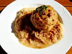 Bayrisch Kraut (Bavarian cabbage)[1] is a traditional Bavarian dish. It is made of shredded cabbage cooked in beef stock with pork lard, onion, apples, and seasoned with salt, black pepper, caraway, sugar and vinegar. It is typically served with bratwurst or roast pork.[2][3] In German cuisine it is an alternative to sauerkraut.