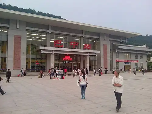 Bazhong railway station (Chinese: 巴中站) is a railway station in Bazhou District, Bazhong, Sichuan, China. It is the southern terminus of the Guangyuan–Bazhong railway and the northern terminus of the Bazhong–Dazhou railway.