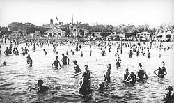By the late 1850s and 1860s, Minneapolis was increasing in population, with large swaths of land available for sale.[28] The largest surges in development around Bde Maka Ska began when the Minneapolis, Lyndale, and Minnetonka Railway Company started operating in 1879.[29] Bde Maka Ska was seen as an attractive tourist destination, and many people invested in resorts and property along the lake. The largest of the resorts was The Lyndale, which opened in 1883 but was destroyed by fire in 1885. Even before its destruction, The Lyndale had struggled to compete with resorts on Lake Minnetonka, and it was not rebuilt.[30] Over time, the railway lost money and was sold to the Minneapolis Street Railway in 1887.[31]