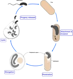 - ^ Rittenberg SC, Shilo M (April 1970). "Early host damage in the infection cycle of Bdellovibrio bacteriovorus". Journal of Bacteriology. 102 (1): 149–60. doi:10.1128/jb.102.1.149-160.1970. PMC 284981. PMID 4908670.