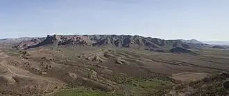 The Beach Mountains are home to rare herds of desert bighorn sheep (Ovis canadensis nelsoni), which tend to be restricted to the mountainous parts of Trans-Pecos Texas and southeastern New Mexico.[5][6] The many rugged escarpments and the highly dissected and eroded conditions within the Beach Mountains produce a rough and precipitous terrain that is highly favored by mountain sheep.[7] Once extirpated, 38 desert bighorns were reintroduced into the Beach Mountains by the government of Texas in 1991 and 1992. In 2009, the Beach Mountains sheep formed part of a population numbering almost 1,200 in several mountain ranges in western Texas.[8]