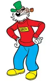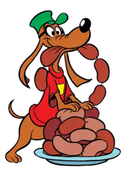 Ottoperotto – univerbation of otto per otto (Italian for '8×8') – is the Beagle Boys' pet dachshund in Italian comic book stories. The joke about him being a dachshund is that in Italy the Beagle Boys are referred to as "Banda Bassotti", which means "Dachshund Gang". Like his masters, Ottoperotto wears a bandit mask, a shirt, and a cap, marked with the number 64 (the result of the 8×8 multiplication). The Beagle Boys frequently take Ottoperotto along on their robberies, to act as a guard dog and to reach spaces too small for the Beagle Boys themselves. However, the plans are often spoiled by Ottoperotto's constant, voracious appetite. Whenever Ottoperotto smells food, he abandons everything else to get to eat it.