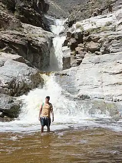 Bear Canyon, located in the Sabino Canyon recreation area of the Coronado National Forest near Tucson, Arizona, offers views of the Santa Catalina Mountains to the north. Accessible by tram or foot from the Sabino Canyon visitors' center, Bear Canyon contains such attractions as the seasonal Seven Falls and Thimble Peak.