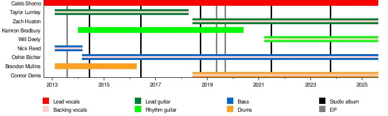 - Caleb Shomo – lead vocals, all studio instruments (2012–present)