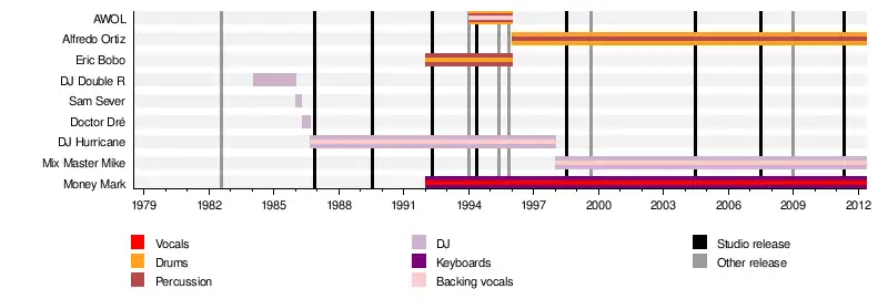 • MCA – vocals (1981–2012; his death), bass (1981–1984, 1991–2012)