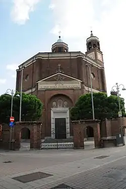 Designed by the architect Ugo Zanchetta of Milan and dedicated to the Assumption of Mary, it was strongly desired by don Pietro Ermolli (1888-1972), parish priest of San Giorgio su Legnano from 1928 to 1969.[2][4] The construction work lasted from 3 March 1933 to October 1934, with the first stone laid on 24 April 1934 and the consecration which took place on 23 April 1935.[2]