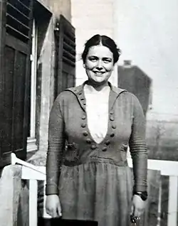 From the end of 1922 to the end of 1927, Franz and Beate Hahn lived in Angermund. During this time, Beate gave birth to daughters Marianne (born 1923) and Charlotte (born 1926) in Düsseldorf clinics. Marianne was mentally and physically disabled due to a birth defect.[5] Angelika Schweizer (1900–1976) joined the family as a nanny for the three daughters and this was the start of a lifelong friendship between the Schweizer and Hahn families. At the address Angermund 105 1/4, the Hahn family lived in a country house with six rooms, three attics and hot-water central heating. This included a garden of almost 3,000 m² and an orchard of about 10,000 m²,[6] which Beate Hahn cultivated herself.[1] In 2008, her daughter, Cornelia, recalled the move to Angermund: "We moved near Düsseldorf to a village, and we had a beautiful garden. The lawn was [full of] daisies. [As a small child] I kept picking the daisies and amusing myself in the garden. This is my first experience of remembering very clearly what I did in the garden." [7] The Hahns had come to Angermund because Franz worked at the Hahnsche Werke in nearby Großenbaum. In 1923, Beate created a youth garden for the workers' children, where they received practical and theoretical gardening lessons four times a week. In addition, a nursery building with an information room and a horticultural library was built. The nursery grew vegetables for the plant's canteen and hotel. A head gardener and his team looked after the gardens of the company directors, senior staff and workers.[8] "Of all the gardens in which I worked, none was as close to my heart as the youth garden and the other facilities in Großenbaum. Chimneys were the background of this garden, soot and dirt were all around in the streets. Children who worked with delight in the garden, that was the youth garden."[8] Beate Hahn described the situation in Angermund during the occupation of the Ruhr by Franco-Belgian troops (1923–1925) in an essay entitled Dem Gefährten – Dezember 1930 (translated as "The Companion – December 1930").[9] This abstract-expressionist text of 16 handwritten pages remained unfinished, but it is the only known description of the events in Angermund during the occupation. Therefore, it is of outstanding importance for local history.[6] At the same time, Hahn's inclination towards her own creative writing style is also recognizable in this text.