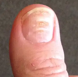 - ^ Bellet, Jane Sanders (2021). "Paediatric nail disorders". In Lipner, Shari (ed.). Nail Disorders: Diagnosis and Management, An Issue of Dermatologic Clinics. Philadelphia: Elsevier. p. 232. ISBN 978-0-323-70923-1.