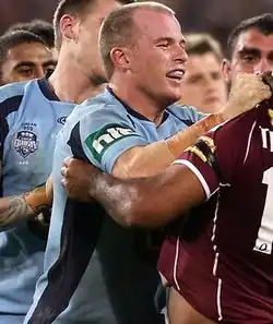 Beau Scott (born 15 May 1984) is an Australian former professional rugby league footballer who played in the 2000s and 2010s in the National Rugby League (NRL). An Australia international and New South Wales State of Origin representative second-row, he could also play centre and lock. He played for the Cronulla-Sutherland Sharks, St. George Illawarra Dragons (with whom he won the 2010 NRL Premiership), the Newcastle Knights and the Parramatta Eels.[2]