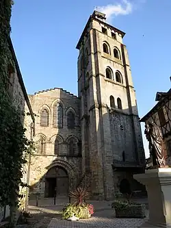 The belfry of the abbey church in Beaulieu-sur-Dordogne.