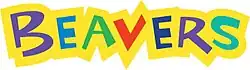 When the section was relaunched in 2002, the Beaver Scout logo consisted of the uppercase red word 'Beavers' with a thick yellow outline laid on top of a circular motif that resembled a cross section of a tree, showing the bark and tree rings in different shades of brown. The typeface used for the logo and for headings in Beaver Scout publications was House Industries' Funhouse with Frutiger used for body text in line with the rest of the association. A smaller logo version, where just the letter 'B' was placed atop the log outline, was available as a variant.[89] The brand was updated in 2012 so that text and pictures focused on fun, friendship and adventure of Beavers although the logo did not change and the colours used only changed in a minor way.[90] This emphasis on adventure, and in particular how trying something new is an everyday adventure for a young Beaver Scout, tied in to the association brand focusing on everyday adventure introduced in 2008.[91] The look also introduced a mascot for the section replacing the generic beaver figure in use previously and creating instead a set of four anthropomorphised Beaver characters from different cultures and named after trees (Ash, Chery, Woody and Holly).[90]