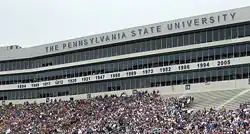 Beaver Stadium is a college football stadium on the campus of Pennsylvania State University in Penn State University Park. It has been home to the Penn State Nittany Lions football of the Big Ten Conference since 1960, though some parts of the stadium date back to 1909. It was also the site of university commencements until 1984.[6] The stadium, as well as its predecessors, is named after James A. Beaver (1837–1914), a governor of Pennsylvania (1887–91), president of the university's board of trustees,[7] and native of nearby Millerstown. The stadium is part of College Township and has a University Park address.