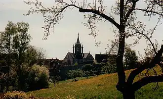 Bebenhausen (German pronunciation: [ˌbeːbn̩ˈhaʊzn̩] ⓘ) is a village (pop. 347) in the Tübingen district, Baden-Württemberg, Germany.[1] Since 1974 it is a district of the city of Tübingen, its least populous one. It is located 3 km north of Tübingen proper (about 5 km northeast of the city centre), in the southeastern part of the protected landscape of the Schönbuch, a dense forest. Bebenhausen is famous for its monastery, Bebenhausen Abbey, founded in 1183 by Count Palatine Rudolph of Tübingen.