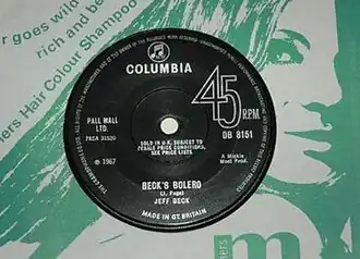 ![]() First UK single pressing with "Bolero" as title and "Jeff Beck" as composer | |