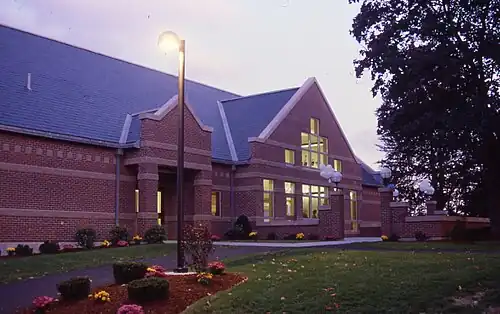 Both campuses occupy historic districts with buildings listed on the National Register of Historic Places. The Worcester campus was located on Sever Street in the residential Elm Park neighborhood, not far from downtown Worcester, which is about 40 miles west of Boston. Purchased in 1854 using public funds, Elm Park is recognized as one of the first purchases of land for a public park in the United States.[17] The campus area belonged to the Lincoln family (noted for governors Levi Lincoln Sr. and Levi Lincoln Jr., and much of it is in the Lincoln Estate-Elm Park Historic District, which includes some historic properties owned by the college. The Leicester campus was adjacent to the historic center of that town, and a number of buildings on that campus are included in the Washburn Square-Leicester Common Historic District.