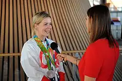 Rebecca Angharad James (born 29 November 1991) is a Welsh former professional racing cyclist specialising in track cycling. James was the 2013 world sprint and keirin champion.[4] She is a 2016 Rio Olympics double silver medalist.
