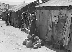 Photograph of the camp showing the makeshift housing of some of the residents