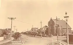 The first developments were on the northern side of the station around Edwin and Elizabeth Streets. Anthony Hordern built his grand home 'Shubra Hall' in 1869 while many of the shops along Edwin Street North were built in the 1880s. Many houses in the areas surrounding Edwin Street North and Elizabeth St are also of the Victorian style popular in the 1880s and 90s.[8] The 1880s and 90s also saw the establishment of the suburbs first schools with Croydon Public School in 1884,[11] and the Presbyterian Ladies' College relocating from Ashfield in 1891.[12]