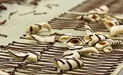 The company produces chocolates on site with free viewing by visitors. In addition to candy bars, cookies, chocolate-covered popcorn and caramel, the company creates chocolate-covered potato crisps and nut clusters under the moniker “Oklahoma cow patties.” Retailers such as Neiman Marcus and Bloomingdales sell Bedré chocolates in stores across the United States. Bedré creates chocolate guitars for guests at Hard Rock Hotels, and Dylan’s Candy sells it under their own private label. In the past, the convenience store 7-Eleven distributed the chocolate under the name Watts Farm, and Braum's, a Midwestern dairy company, also sold the chocolate under its own brand name.[5][6]