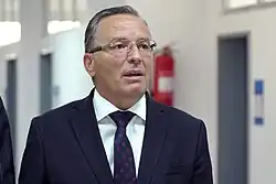Bedri Hamza (born 8 November 1963) is a politician and administrator in Kosovo. He has been the Republic of Kosovo's finance minister on two occasions, served three terms in the Assembly of the Republic of Kosovo, was governor of the Central Bank of Kosovo from 2013 to 2017, and is the current mayor of South Mitrovica. Hamza is a prominent member of the Democratic Party of Kosovo (PDK).