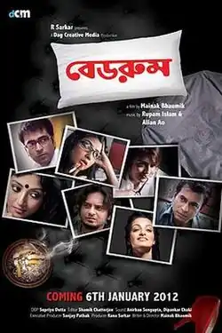 Bedroom (Bengali: বেডরুম) is a 2012 Indian Bengali drama film directed by Mainak Bhaumik. Bedroom stars Abir Chatterjee, Rudranil Ghosh, Ushasie, Parno Mitra, Paoli Dam, Rahul, Tanushree, Anubroto Basu & others.[1][2]