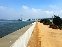 In 2018, the Puqian Bridge was built. Some of the abutments are situated on the northwest part of the island. To aid in construction, a service bridge was built along the north side of the Puqian Bridge to bring construction supplies from the west coast of the harbor to Beigang Island. The residents of the island have used this bridge to bring house construction materials to their island. Prior to the existence of this service bridge, supplies had to be ferried to the island at considerable expense. This bridge has caused an increase in house construction.