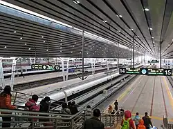 Beijingxi (Beijing West) railway station (Chinese: 北京西站; pinyin: Běijīngxī Zhàn), colloquially referred to as West Station (Chinese: 西客站), is located in western Beijing's Fengtai District. Opened in early 1996 after three years of construction, it was the largest railway station in Asia with an area of 510,000 m2 (5,500,000 sq ft),[1][2] before being surpassed by Shanghai Hongqiao railway station in platform capacity. The station serves in average 150,000–180,000 passengers per day with a maximum of 400,000 people per day.[3] It was expanded during the 2000s decade, during which several platforms were added. It also has a fairly large number of car-parking spaces.
