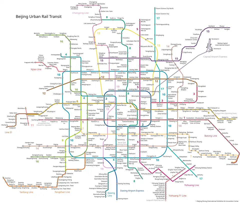 - ^ Jin, Zhang. "Beijing starts building five more subway lines". CRIenglish.com. China Radio International. Archived from the original on December 10, 2016. Retrieved December 14, 2016.