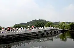 The Beishan Scenic Area is named after a nearby mountain known as Beishan, which belongs to the Xuantianling Mountain Range, with an altitude of 269.8 meters above sea level. The mountain is named Beishan because it is north of the ancient city of Jilin.[3] Temples have been built on Beishan since the 16th century. In 1924, the area was turned into a park.[4]