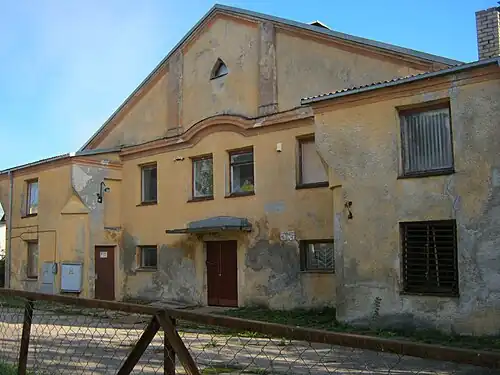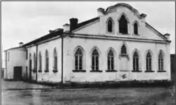 In 1941 80% of Jonava's population was Jewish and town had seven synagogues.[4] The Beit Medrash Hagadol Synagogue together with the Jonava Synagogue of Merchants are the only remaining synagogues in the town; and both are not in use. The Beit Medrash Hagadol Synagogue was one of the two biggest synagogues in Jonava. The main synagogue, called the Red Synagogue of Jonava, that was located next to Beit Midrash Hagadol, was destroyed by Nazis, along with the other synagogues.[5][3]