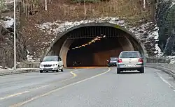 The Bekkestua Tunnel (Norwegian: Bekkestuatunnelen) is a road tunnel which runs under Bekkestua in Bærum, Norway. Forming a part of the Norwegian National Road 160, it starts northeast of Bekkestua to ease this population and commercial centre of heavy traffic, and emerges in the southwest near Gjønnes Station. It was opened in 1994,[1] and was financed by the Oslo Package 1.[2]