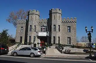 Bel Air Armory is a historic National Guard armory located at Bel Air, Harford County, Maryland. It was constructed in 1915 of Port Deposit granite. The building consists of the main block, five bays by three, two stories over a raised basement, and the "drill hall" to the rear of the main block. The front elevation is detailed to recall Medieval fortifications and features two projecting hexagonal towers which rise to three stories and are topped by crenelated battlements finished in stone coping.[2]