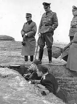 The Belarusian Home Defence,[3] or Belarusian Home Guard (Belarusian: Беларуская краёвая абарона, romanized: Biełaruskaja krajovaja abarona, BKA; German: Weißruthenische Heimwehr)[4] were collaborationist volunteer battalions formed by the Belarusian Central Council (1943–1944), a pro-Nazi Belarusian self-government within Reichskommissariat Ostland during World War II.[5] The BKA operated from February 23, 1944, to April 28, 1945. The 20,000 strong Belarusian Home Defence Force was formed under the leadership of Commissioner-General Curt von Gottberg,[5] with logistical help from the German SS-Sonderbataillon Dirlewanger, " commanded by Oskar Dirlewanger.[5]