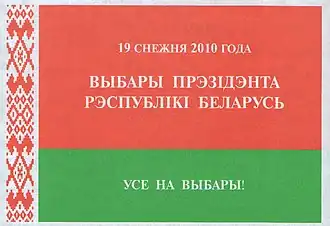- ^ "Lukashenko: 79.67% is quite a good result". Belarusian Telegraph Agency. 2010-12-20. Archived from the original on 2011-07-06. Retrieved 2010-12-23.