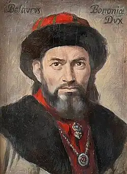 Belaur (Bulgarian: Белаур) (died 1336) was a Bulgarian noble and despot of Vidin and brother of the Bulgarian Emperor Michael Shishman (1323–1330). The son of Shishman of Vidin, he was among the most elaborate Balkan diplomats of his time. Plamen Pavlov interprets Belaur's name as stemming from the Hungarian personal name Béla and the title ur ("prince").[1] It may also come from Balaur, a mythical dragon in Vlach/ Romanian culture, the dragon was supposedly also revered in Cuman culture, cf. Kipchak "uran, ewren". Vlach-Cuman cultural interactions are known through the Cuman origin of the Basarab dynasty and the Vlach identification of the Asenid dynasty, named after the founder of the dynasty, Bilgun Asen, who carries a Cuman name and title.[2]