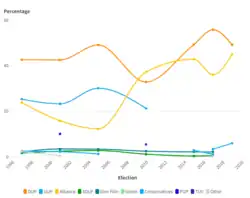 Belfast East is an overwhelmingly unionist constituency with nationalist parties routinely failing to get more than 10% of the vote combined.[2] The main interest has been the contest between unionist parties and the fortunes of the Alliance Party of Northern Ireland.