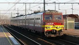 A recent addition is line 25N, which branches off south of Mechelen to follow the E19 motorway into the Diabolo to Brussels Airport. As of 2019, works are underway to extend this line 25N through the Mechelen station, adding two platforms, to rejoin the "regular" line 25 North of Nekkerspoel station.[2] L25N has 3 kV DC electrification, and allows speeds up to 160 km/h (100 mph).
