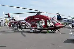The Bell 429 GlobalRanger is a light, twin-engine helicopter developed by Bell Helicopter and Korea Aerospace Industries. The first flight of the prototype took place on February 27, 2007,[4] and the aircraft received type certification on July 1, 2009.[5] The Bell 429 is capable of single-pilot IFR and Runway Category A operations.[6]
